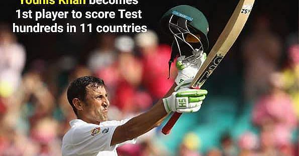 Younis Khan has become the first player to score test hundreds in 11 different countries( all the 10 cricket playing nations plus the UAE). Younis achieved this feat with his 100 on the 3rd day of the third test against Australia at Sydney on January 5.